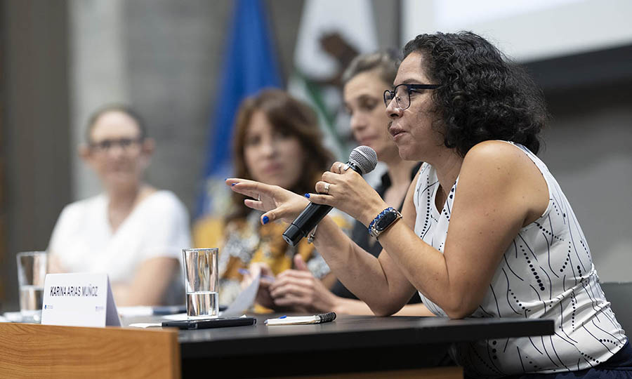 Al hacer un recuento histórico del proyecto, Montes recordó cómo en 2012, recién egresada, fundó la clínica jurídica de la Loyola Marymount University ya que en la comunidad, integrada principalmente por migrantes centroamericanos, “faltaban servicios jurídicos y organizaciones de incidencia para enfrentar un sistema hecho para deportar, no para proteger. Lo que hicimos fue trabajar con ellos, la comunidad define las metas”. Esto, añadió, habría de marcar la pauta para el modelo de trabajo puesto en marcha y que habrá de replicarse en Guadalajara: trabajar en función de las necesidades de las personas y de la comunidad. También mencionó su relación con el ITESO, a donde acude cada año como profesora invitada del Verano Internacional, y cómo esta experiencia le permitió ver que hay una conexión importante entre Guadalajara y Los Ángeles, lo que dio pie a la idea de fundar la clínica binacional.